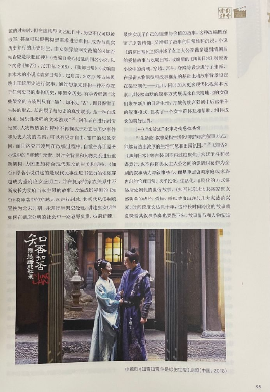 该文提出:女性力量的崛起和女性意识的觉醒催生了文艺作品的女性化创作倾向,女频穿越网文以独特的女性视角、新奇的叙事方式吸引了众多读者,据其改编的古装剧延续了原著小说的女性视角、情节设定和主题表达,即以女性角色的“穿越”为叙事起点和逻辑线索呈现她们在不同时空的生存境遇和价值追求,不同剧集在叙事风格、叙事策略、角色塑造、历史观念及女性表达等维度侧重点各异。文章认为当前热度较高的穿越古装剧在叙事建构和女性表达层面主要有三种方式:一是基于真实历史的女性个体叙事,二是模糊历史指向的女性群体叙事,三是拼贴戏仿历史的女性“爽感”叙事。