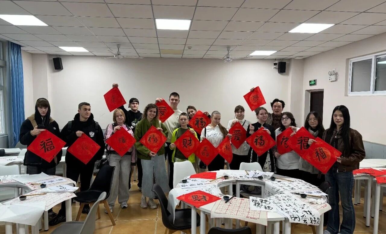 书法课程——11月6日下午,在设计与美术学院教师王希的指导下,学子们深入了解中国汉字起源,亲手练习毛笔字、书写福字,沉浸式感受中国传统书法的独特魅力。