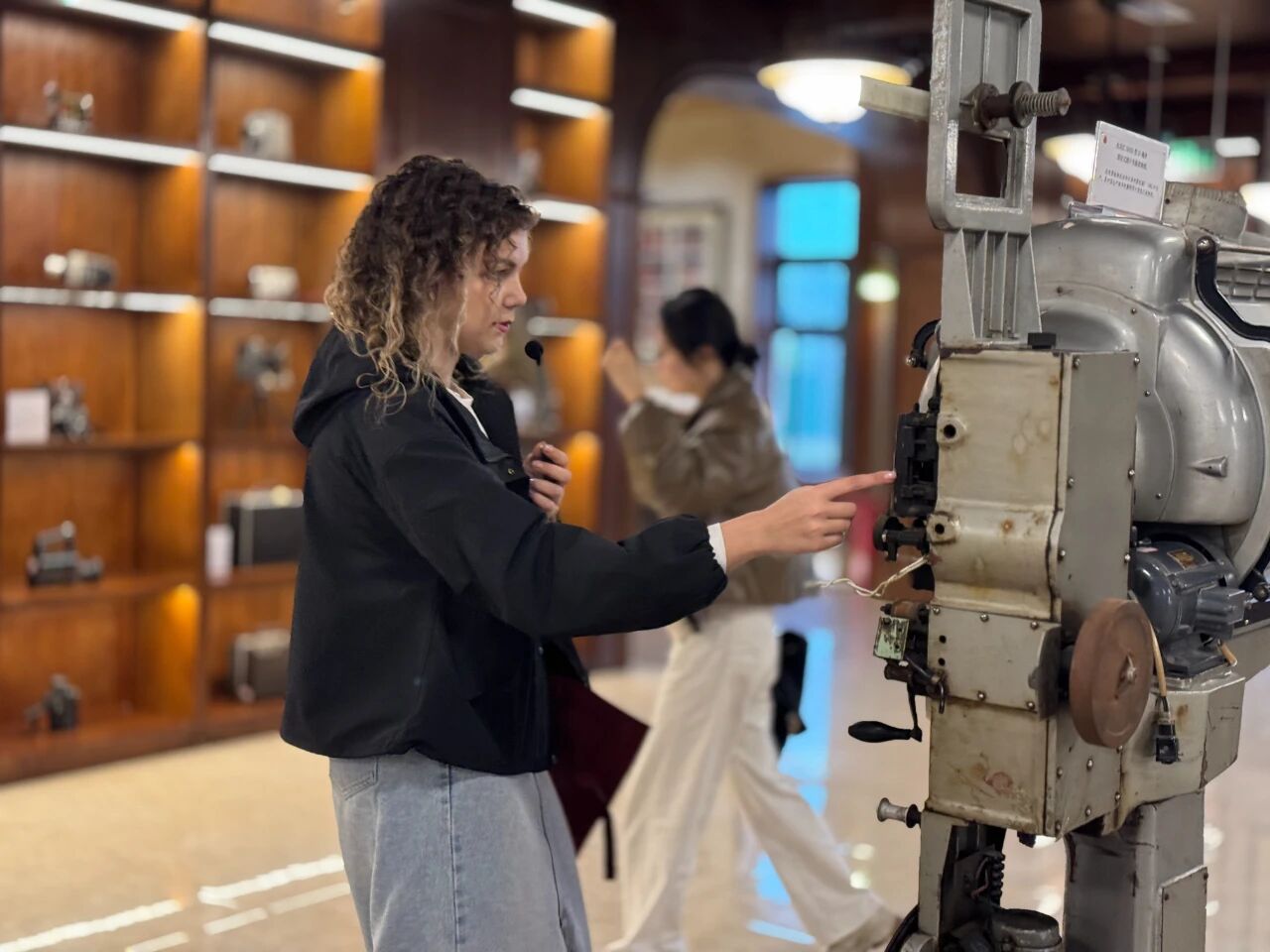 11月3日上午,访学团一行在音乐厅观看了学校宣传片后,前往四川影视文创城参观探访。沉浸式的环境让大家真切感受到浓厚的影视艺术氛围,而电影博物馆内的丰富藏品更让学子们驻足流连,不时为各类珍贵展品发出由衷赞叹。
