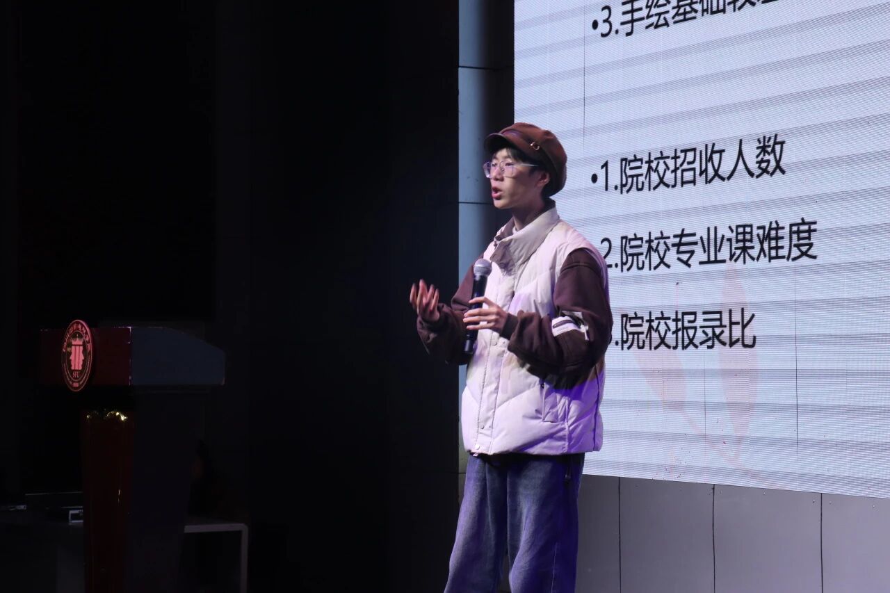 学长从考研基础知识切入,详细拆解了科目设置、学硕与专硕区别、国家线与院校线差异等内容,并结合2025年成大录取数据,强调“院校线才是上岸关键门槛”。在择校方面,他以自身选择为例,建议英语水平较好、手绘基础稍弱的同学优先选择理论占比高、专业课不压分的院校,还分享了“框架式记忆+模拟考”的理论复习法,以及“临摹优秀作品+线下集训+模板化输出”的手绘练习技巧,让学子掌握了精准发力的方向。针对备考压力,学长也给出了运动放松、兴趣转移、社交倾诉等具体方法,让现场同学都受益匪浅。