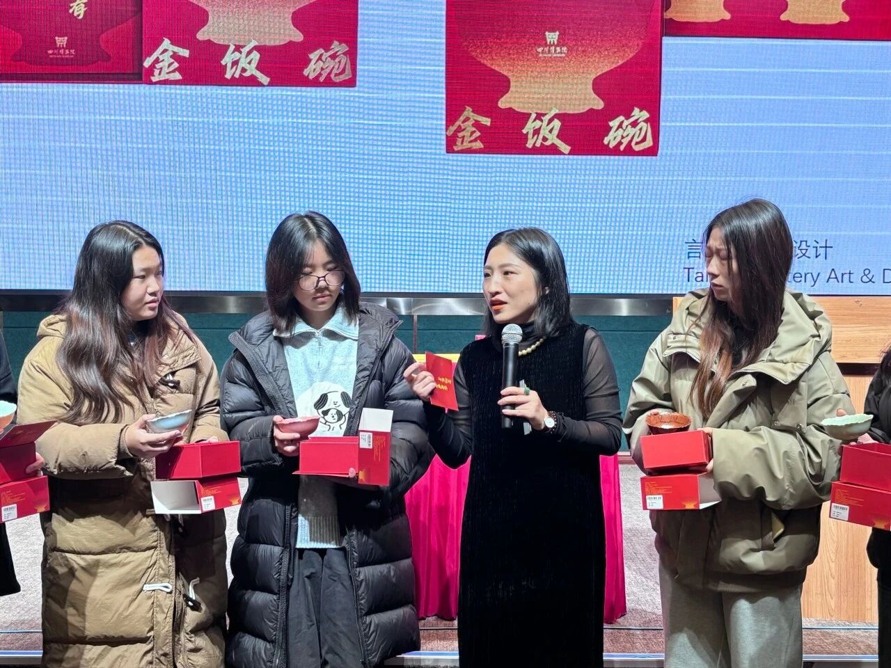 分享现场,谢彦老师向大家展示了其公司的爆款文创产品——“芙蓉金饭碗”。这款文创以成都“蓉城”专属城市符号芙蓉花为核心灵感,深度萃取千年传统文化中的美学基因,与成都地域文化交融共生,让底蕴深厚的传统文化,化作可触、可感、可亲的日常形态,真正走进大众生活。