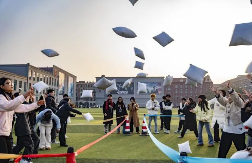 作为全场氛围“引爆点”的枕头大战在柔软场地内率先开启,参与者手持蓬松抱枕在指定区域尽情“对战”,无需顾虑胜负,只需以枕头为“武器”释放压力、享受欢闹,充足防护措施让大家在安全环境中消散疲惫、感受纯粹快乐。