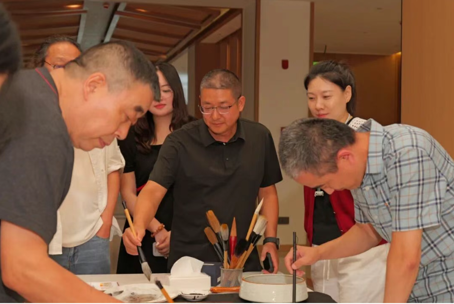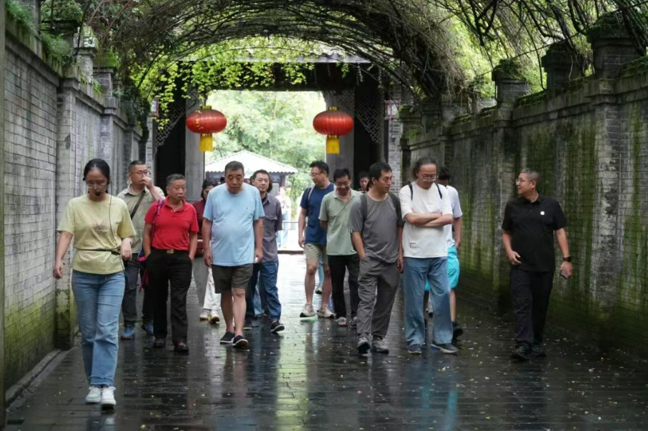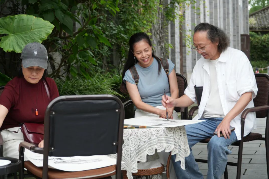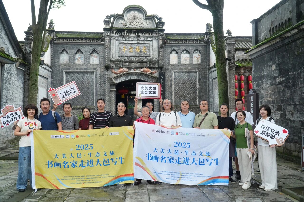在为期三天的创作交流中,四川电影电视学院设计与美术学院执行院长李靖、综合办公室副主任任樱全程参与,与四川省美协顾问、著名画家姚叶红;四川省美协副主席李晖等三十余位书画名家组成创作团队,深入刘氏庄园博物馆、安仁老街、四川影视文创城等大邑核心文化场景。艺术家们或于刘文琥公馆的雕花窗前凝神写生,或在树人街头铺纸挥毫,以笔会友、以画传情