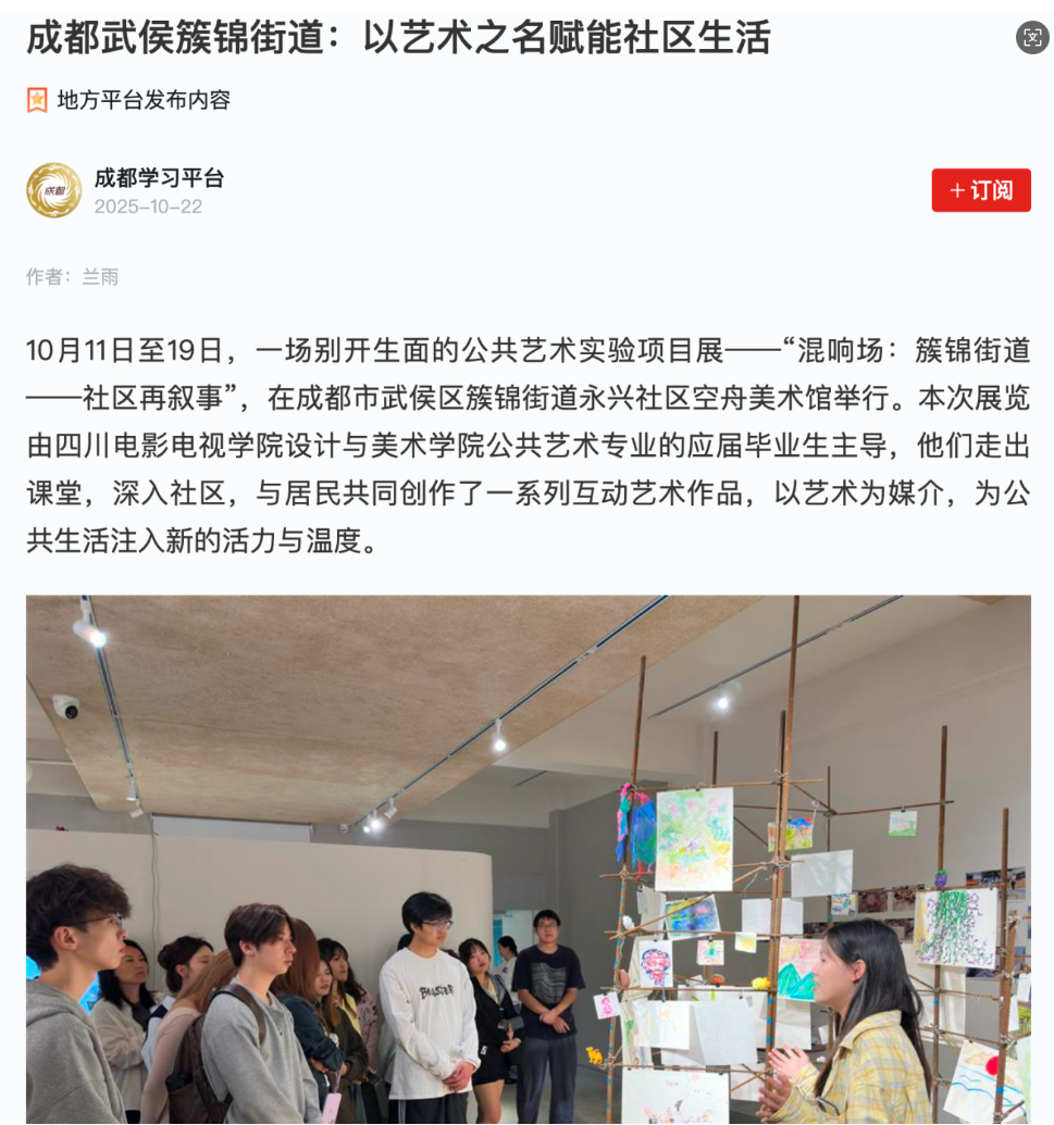 项目式教学:参与“首届天府公共艺术季”“成渝艺术双城汇”等项目