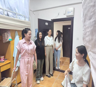 走访过程中每到一间宿舍,李兵院长与黄娟副院长都会轻声询问新生是否习惯食堂饮食、能否跟上上课节奏,还暖心提醒:“不管是啥生活琐事,辅导员和学院都是你们随时在线的家人”。贺贝副书记则格外留意新生的适应状态,他笑着和大家聊起专业学习与校园生活的衔接,温柔安抚:“慢慢来,不用急,有问题随时说”。