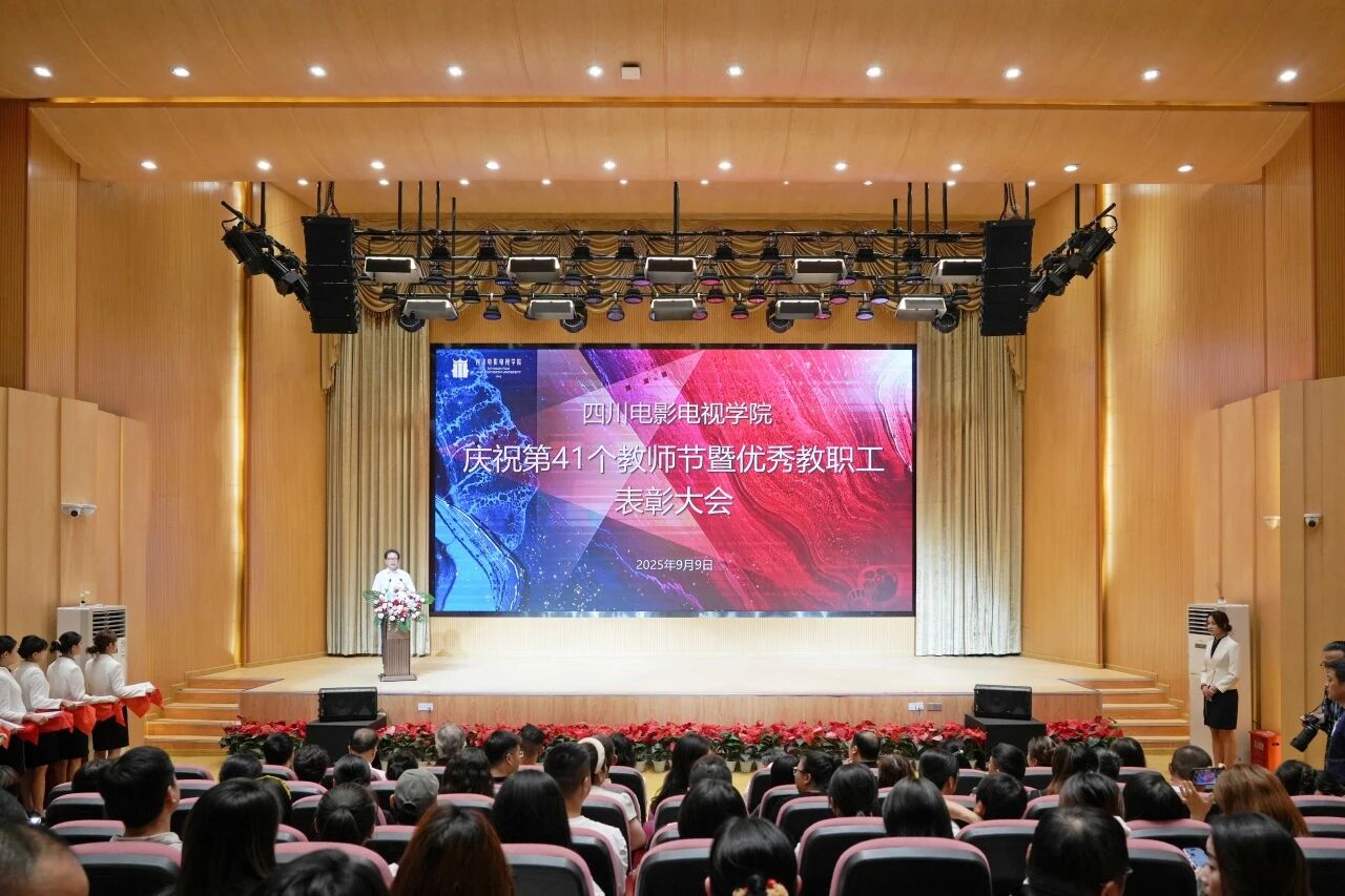 9月9日,四川电影电视学院隆重举行庆祝第41个教师节暨优秀教职工表彰大会,四川省教育厅一级巡视员傅明、校领导、各二级学院党政负责人、职能部门负责人、优秀教职工代表齐聚一堂,礼赞师恩。校党委副书记、纪委书记于世祥主持大会。