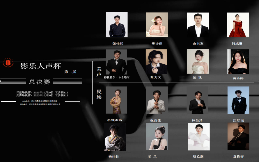 2025年10月29日和10月30日,连续两晚的盛况在艺步楼112上演,音乐学院第二届“影乐人声”杯民族、美声声乐比赛决赛在此隆重举行。莅临现场的嘉宾有学院党委书记李兵,学院党委副书记贺贝,本次比赛民族组评委则是由学院教师朱明敏,张茜,李纪欣,郑文婷,杨冰洁,张孟翕担任;学院教师龚寅甲,陈梦缘,徐斌豪,张媛羚...